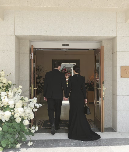 - 남성: 검정 정장 + 흰 셔츠 + 검정 넥타이 + 검정 양말과 구두